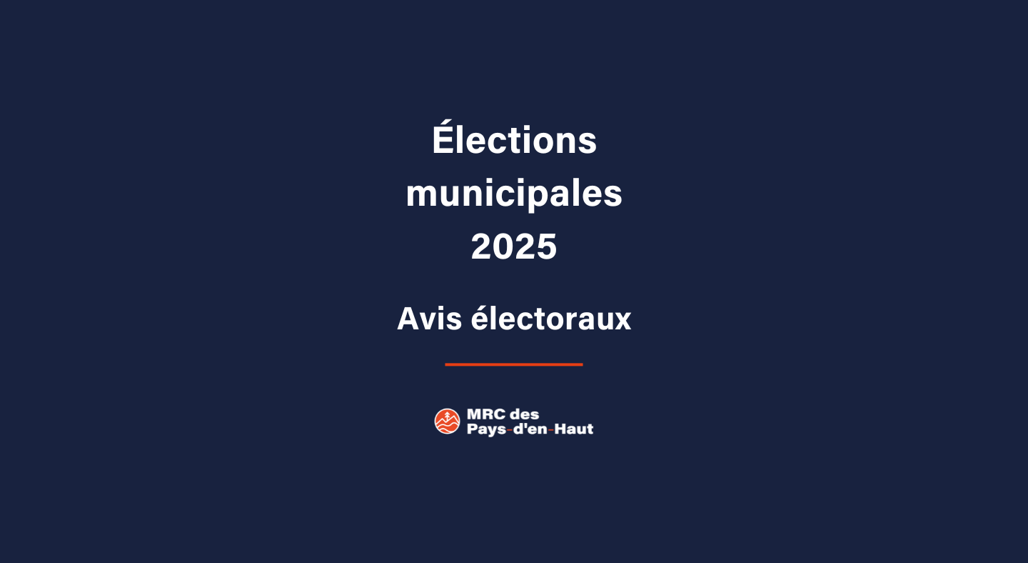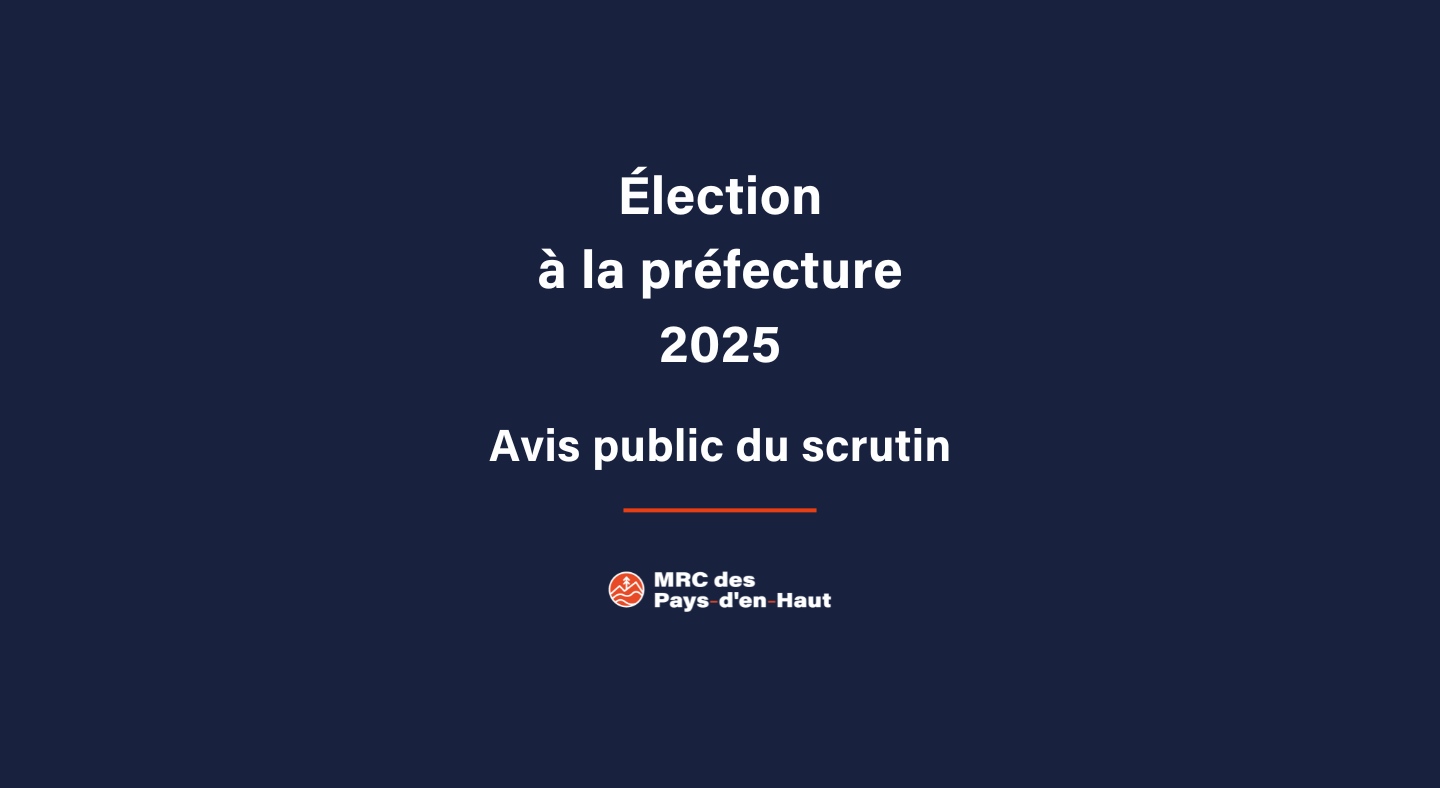 Lors des élections générales municipales du 2 novembre 2025, les citoyennes et citoyens seront appelés à élire la préfète ou le préfet qui présidera le Conseil de la MRC. Ce conseil regroupe les mairesses et maires des 10 villes et municipalités constituant la MRC, qui seront eux aussi choisis par la population lors de ces mêmes élections..